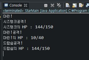 System.out.println(m1 + "의 HP : " + m1.getHp() + "/" + m1.getMaxHp());