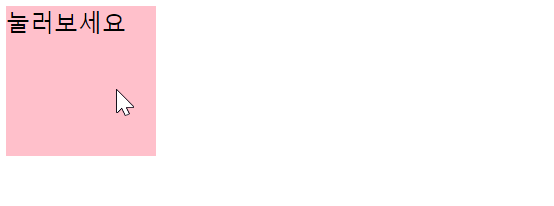 <div id="box" style="background-color:pink; width:100px; height:100px;position:absolute;">눌러보세요</div>