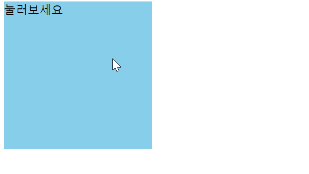 <div id="box2" style="background-color:skyblue; width:200px; height:200px;position:absolute;">눌러보세요</div>